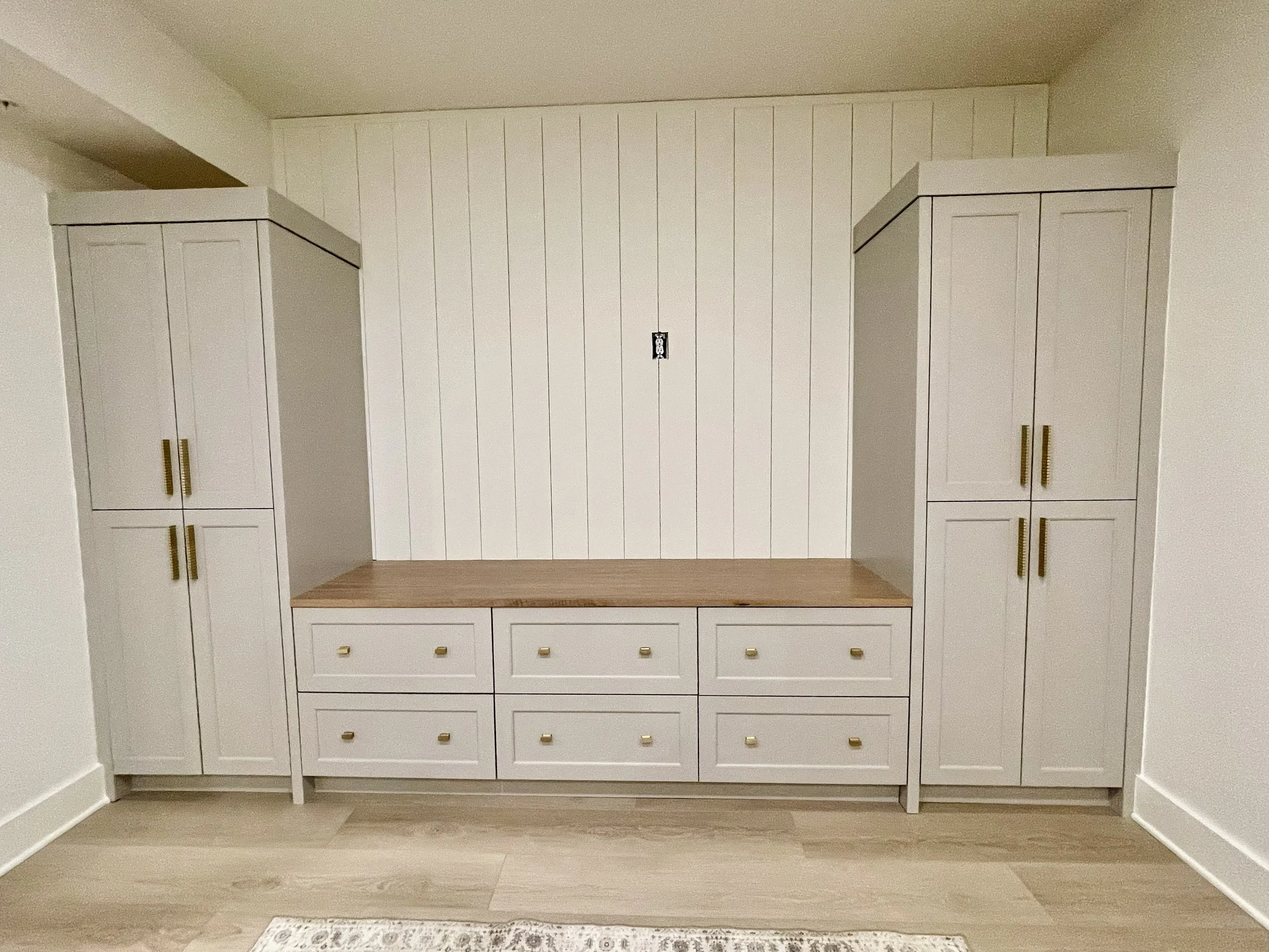 Hall’s Hardwood & Cabinetry builds storage cabinets using high-quality materials, durable hardware, and refined finishes that are designed to stand up to frequent use while maintaining a beautiful appearance. Each project is crafted with attention to detail in every joint, surface, and component.